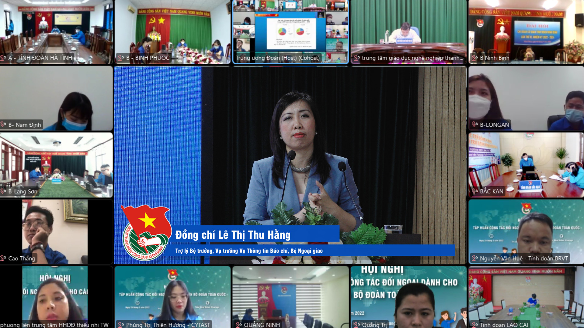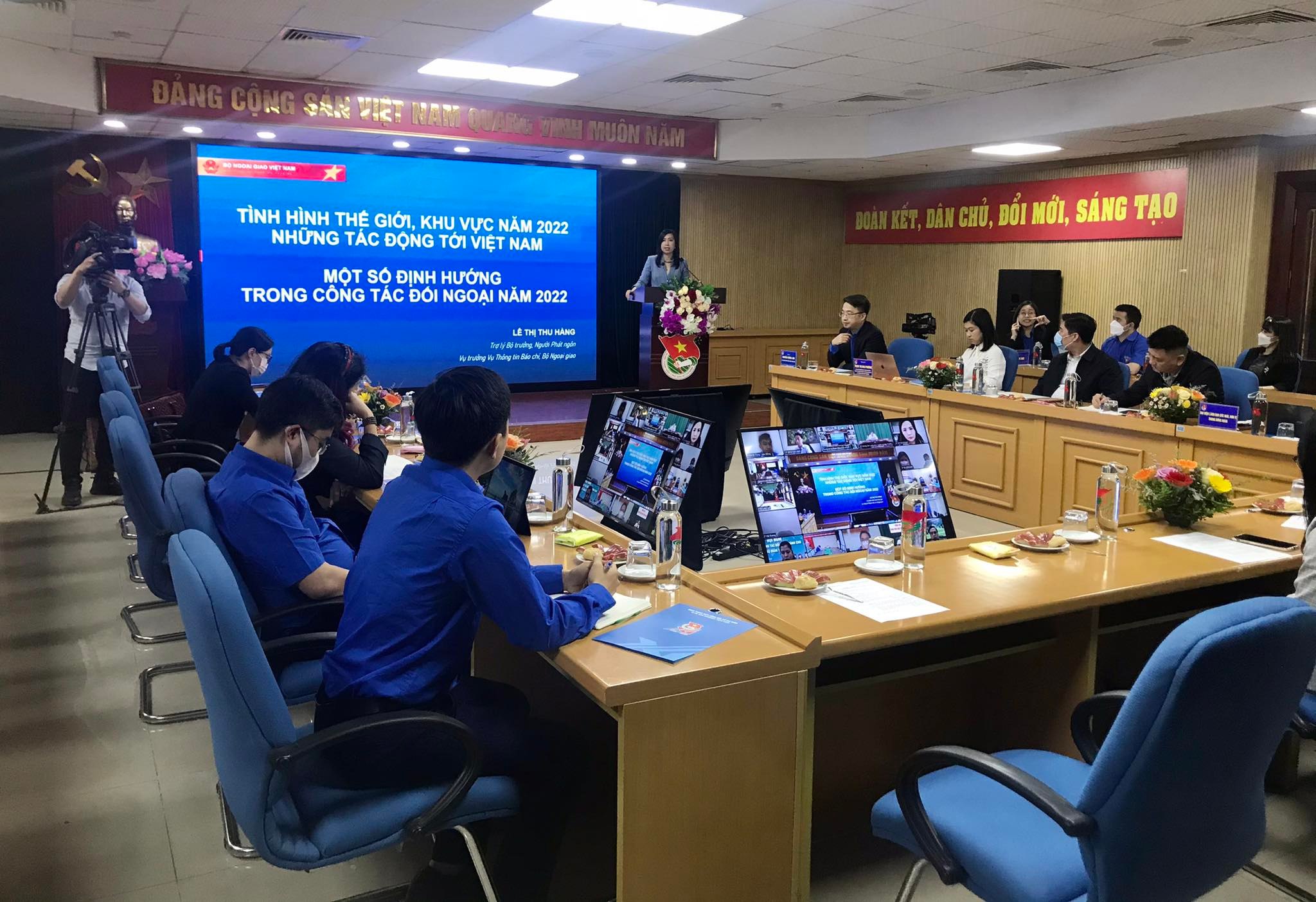 Hội nghị đã được các báo cáo viên thông tin 03 chuyên đề về công tác đối ngoại dành cho cán bộ Đoàn. Theo đó, chuyên đề thứ nhất bao gồm các nội dung về tình hình thế giới, khu vực năm 2022 và tác động tới Việt Nam; một số định hướng trong công tác đối ngoại năm 2022 do đồng chí Lê Thị Thu Hằng, Trợ lý Bộ trưởng, Vụ trưởng Vụ Thông tin Báo chí, Bộ Ngoại giao thông tin tại hội nghị. Trong đó, nổi bật là định hướng trong công tác đối ngoại với tư tưởng chỉ đạo độc lập, tự chủ vì hoà bình hữu nghị, hợp tác và phát triển trên nguyên tắc lợi ích quốc gia dân tộc là cao nhất, trên cơ sở tuân thủ các nguyên tắc cơ bản của Hiến chương Liên Hiệp Quốc và Luật pháp Quốc tế; Với phương hướng toàn diện trên 3 trụ cột là kiên định nguyên tắc, chiến lược và linh hoạt về phương pháp sách lược.