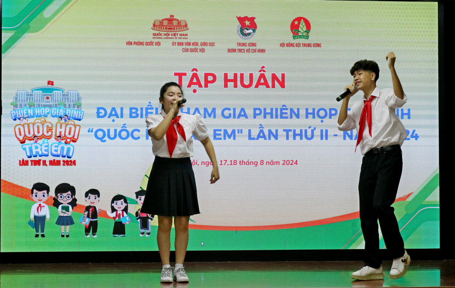 Phát biểu tại buổi tập huấn, đồng chí Nguyễn Phạm Duy Trang - Bí thư T.Ư Đoàn, Chủ tịch Hội đồng Đội T.Ư cho biết, phiên hop giả định Quốc hội trẻ em là một trong những mô hình ý nghĩa nhằm thúc đẩy sớm sự tham gia của trẻ em vào các hoạt động chính trị, xã hội, góp phần đảm bảo quyền và lợi ích của trẻ em, định hướng cho trẻ em trở thành những công dân có trách nhiệm với đất nước, xã hội.