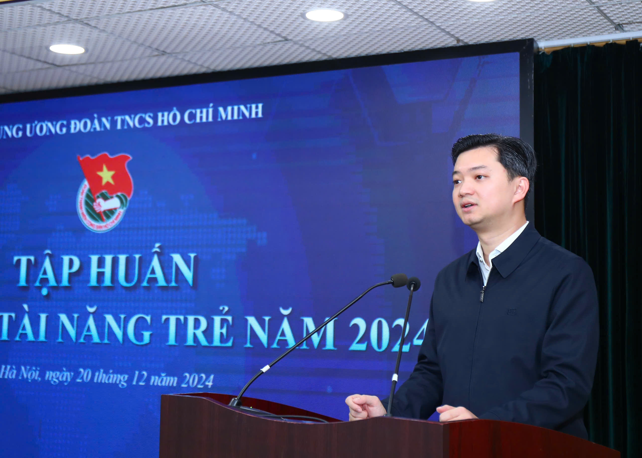 Đồng chí Nguyễn Minh Triết, Bí thư Trung ương Đoàn, Chủ tịch Trung ương Hội sinh viên Việt Nam phát biểu tại Tập huấn toàn quốc công tác tài năng trẻ năm 2024