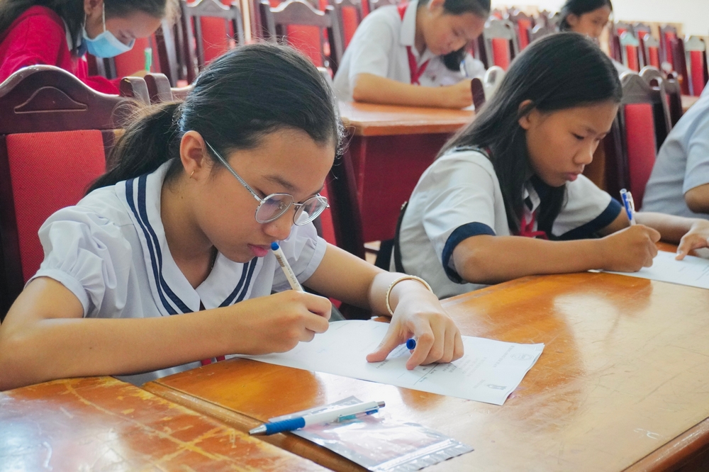 Các thí sinh Bảng A (khối Tiểu học) tham gia dự thi phần thi Listening.
