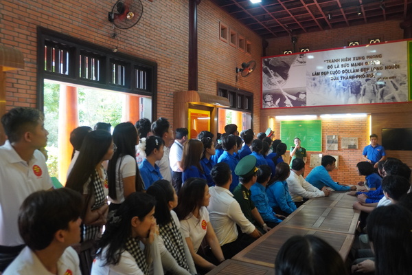 Tại đây, đoàn đã tham gia thực hiện hoạt động dâng hoa, dâng hương các anh hùng liệt sĩ, cùng nhau lắng nghe các bài thuyết minh, cùng nhau học tập, ôn lại những trang sử hào hùng, những truyền thống vẻ vang của dân tộc tại Khu tưởng niệm Liệt sĩ Thanh niên Xung phong Thành phố Hồ Chí Minh nhân kỷ niệm 75 năm Ngày truyền thống lực lượng Thanh niên Xung phong (15/7/1950 – 15/7/2025). Đồng thời đoàn đã tổ chức Khai mạc chương trình “Biên giới, biển, đảo trong tim tôi” năm 2025.