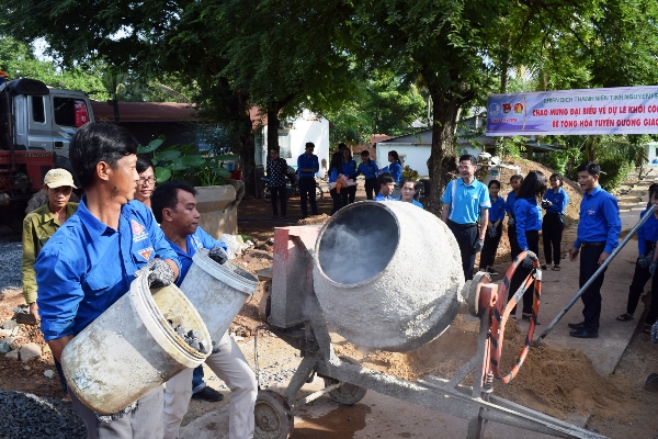 Tại huyện biên giới Tân Châu, chị Hoàng Thị Thanh Thúy - Bí thư Tỉnh đoàn Tây Ninh đã đến dự và cùng lực lượng đoàn viên, thanh niên tại địa phương khởi công thực hiện tuyến đường giao thông nông thôn trên địa bàn ấp Tân Thuận, xã Tân Hòa. Tuyến đường có chiều dài 500m được bê tông hóa, do Công ty Cổ phần Xi măng Fico Tây Ninh hỗ trợ 30 tấn xi măng và lực lượng đoàn viên, thanh niên tình nguyện đóng góp ngày công lao động.