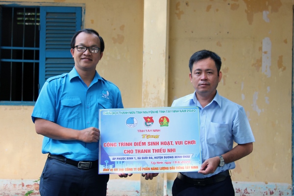 Sáng cùng ngày, tại Huyện Dương Minh Châu, đoàn thanh niên Tây Ninh cũng đã trao tặng địa phương 1 cụm trò chơi thiếu nhi. Đồng thời, phối hợp cùng câu lạc bộ thầy thuốc trẻ của tỉnh cùng mạnh thường quân tổ chức tư vấn, khám bệnh, cấp phát thuốc miễn phí và tặng 150 phần quà cho bà con có hoàn cảnh khó khăn trên địa bàn xã suối đá và tặng 50 phần quà cho các em học sinh nghèo hiếu học tại trường tiểu học Suối Đá B với tổng giá trị hơn 90 triệu đồng.