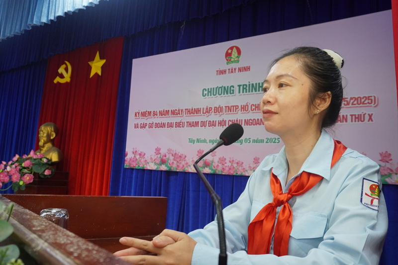 Phát biểu tại chương trình, đồng chí Trịnh Thị Như Trang, Phó Bí thư Tỉnh đoàn, Chủ tịch Hội đồng Đội tỉnh nhấn mạnh tổ chức đội tỉnh Tây Ninh sẽ tiếp tục gìn giữ và phát huy truyền thống vẻ vang của Đội TNTP Hồ Chí Minh, với truyền thống của quê hương trung dũng, kiên cường, xứng đáng với sự hy sinh và tâm huyết của biết bao thế hệ cha anh đi trước.