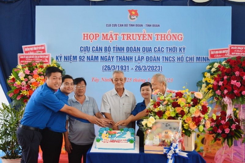 Nhân kỷ niệm 92 năm ngày thành lập Đoàn TNCS Hồ Chí Minh, Ban Chủ nhiệm CLB Cựu cán bộ Tỉnh đoàn và Ban Thường vụ Tỉnh đoàn đã cùng cắt bánh kem chào mừng ngày kỷ niệm và cùng theo dõi video về quá trình thành lập và phát triển của Đoàn TNCS Hồ Chí Minh, trong đó có tổ chức Đoàn tỉnh Tây Ninh.
