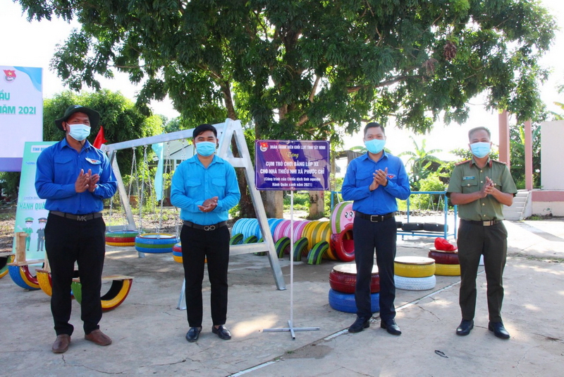 Chiến dịch Hành quân xanh khởi động với phần việc bàn giao công trình cụm trò chơi thiếu nhi bằng lốp xe tái chế với tổng giá trị 30 triệu đồng tại Trung tâm học tập cộng đồng xã Phước Chỉ, thị xã Trảng Bàng.