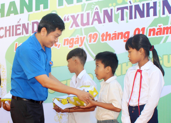 Phó Bí thư Tỉnh đoàn Nguyễn Tiến Tân trao học bổng cho các em học sinh nghèo vượt khó |