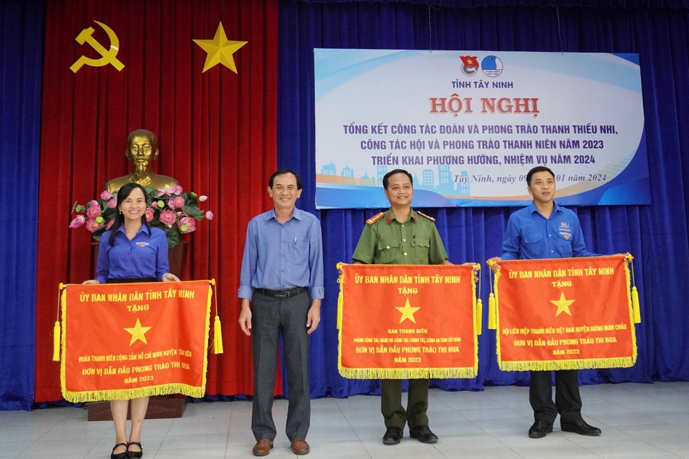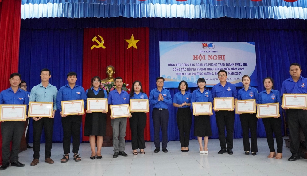 Dịp này Ban Thường vụ đã tổ chức trao khen thưởng cho các tập thể, cá nhân có thành tích xuất sắc trong công tác Đoàn và phong trào thanh thiếu nhi, công tác Hội và phong trào thanh niên năm 2023, cụ thể: Tặng cờ của Chủ tịch UBND tỉnh cho 03 đơn vị dẫn đầu công tác Đoàn và công tác Hội (Dương Minh Châu; Tân Biên và Ban Thanh niên Công an Nhân dân tỉnh); tặng bằng khen của Chủ tịch Uỷ Ban Nhân dân tỉnh cho 23 tập thể và 11 cá nhân có nhiều thành tích xuất sắc trong công tác Đoàn, Hội năm 2023; Trao khen thưởng của Trung ương Hội LHTN Việt Nam cho 02 tập thể và 10 cá nhân có thành tích xuất sắc trong công tác Hội năm 2023. Nhân dịp này, Ban Thường vụ Tỉnh đoàn cũng xem xét, khen thưởng cho 18 tập thể, 19 cá nhân và Ủy ban Hội LHTN Việt Nam tỉnh xét khen thưởng cho 08 tập thể, 06 cá nhân có thành tích xuất sắc trong công tác Đoàn, Hội; Trao khen thưởng của Trung ương Đoàn TNCS Hồ Chí Minh cho 09 tập thể có thành tích xuất sắc trong Chiến dịch Thanh niên tình nguyện hè năm 2023; Tặng bằng khen của Ban Thường vụ Tỉnh đoàn tặng Bằng khen cho 09 đơn vị triển khai đạt tỷ lệ 100% trước thời gian quy định của tỉnh. Trao tặng bằng khen của Ban Thường vụ Tỉnh đoàn cho 03 đơn vị xuất sắc khai đạt 100% đoàn viên thực hiện kiểm tra Nghị quyết trên App Thanh niên Việt Nam.