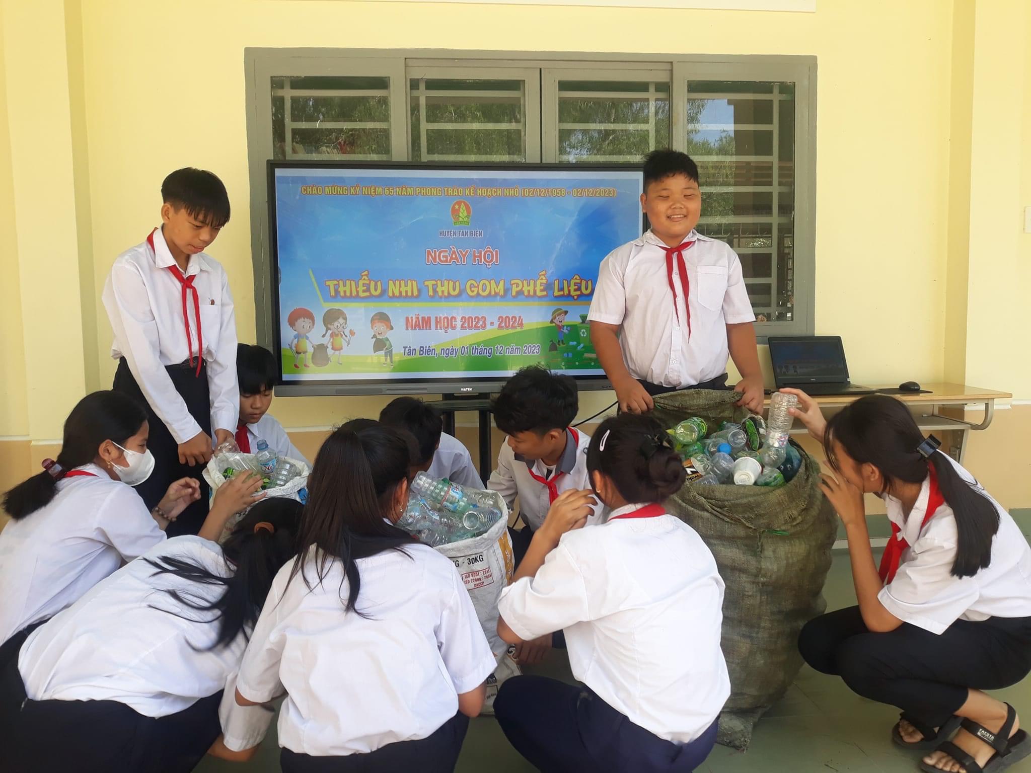 Đội viên, thiếu nhi huyện Tân Biên tham gia góp chai nhựa làm Kế hoạch nhỏ
