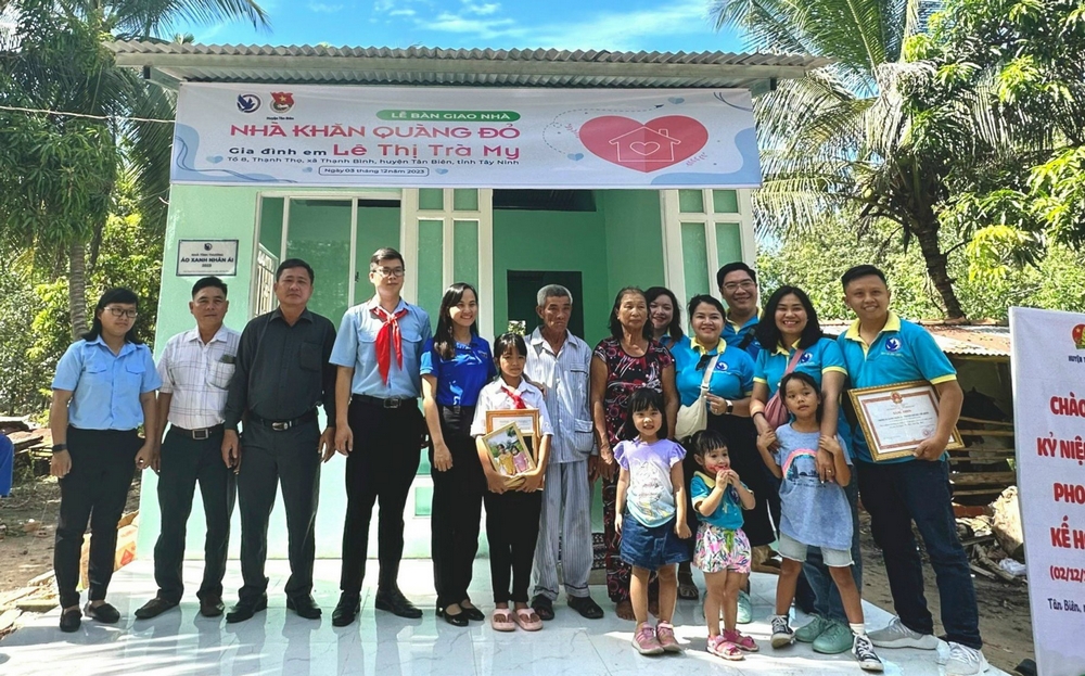 Hội đồng Đội huyện Tân Biên trao tặng Nhà khăn quàng đỏ cho học sinh, đội viên có hoàn cảnh khó khăn.