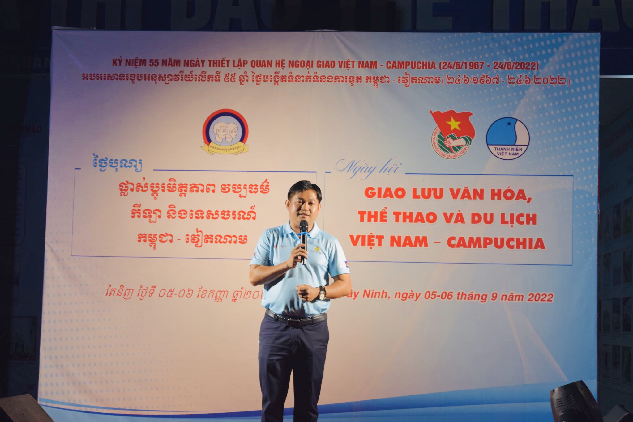 Đây cũng là dịp để Thanh niên giữa 02 nước tìm hiểu rõ hơn về truyền thống đoàn kết hữu nghị giữa Việt Nam - Campuchia. Sau phần giao lưu, trình diễn các tiết mục văn nghệ vô cùng đặc sắc đến từ 02 quốc gia Việt Nam - Campuchia thanh niên 02 nước Việt Nam - Campuchia đã cùng hòa chung không khí vui tươi, sôi nổi của tình hữu nghị, đoàn kết, gắn bó cùng nhau tham gia chương trình Khai mạc lửa trại “Vòng tay bè bạn”.