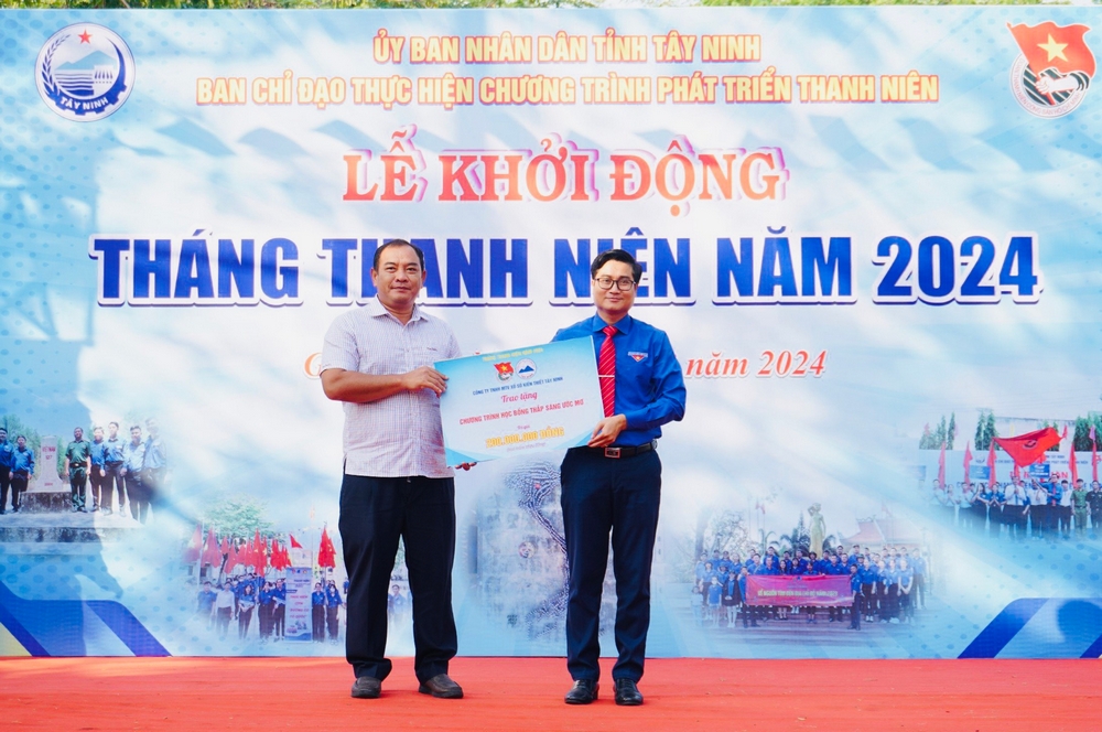 Tại Lễ ra quân Tháng Thanh niên năm 2024, đã tổ chức trao tặng các bảng tượng trưng công trình phần việc như: trao tượng trưng chương trình thắp sáng ước mơ trị giá 200 triệu đồng do Công ty TNHH MTV Xổ số kiến thiết Tây Ninh tài trợ; trao bảng tượng trưng của Hội đồng Đội Trung ương, Trung tâm Hỗ trợ và Phát triển Thiếu nhi Việt Nam cụm trò chơi cho thiếu nhi khu vực đồng bào dân tộc thiểu số với tổng giá trị 50 triệu đồng; Trung tâm hướng nghiệp Thành phố Hồ Chí Minh trao bảng tượng trưng tặng 1.000 bản đồ trị giá 25 triệu đồng và tư vấn hướng nghiệp, tuyển sinh cho 20.000 học sinh các trường trên địa bàn tỉnh; trao bảng tượng trưng hỗ trợ 01 căn nhà 50 triệu đồng cho huyện Gò Dầu của Saigontourist; trao bảng tượng trưng khám bệnh, cấp phát thuốc miễn phí 300 suất cho nhân dân huyện Gò Dầu với tổng kinh phí 100 triệu đồng của Viện Y dược học dân tộc TP. Hồ Chí Minh, Hội Đông y TP. Hồ Chí Minh; trao bảng tượng trưng 01 căn nhà trị giá 90 triệu đồng vận động từ nguồn hỗ trợ của Công ty Cấp nước Sài Gòn; trao bảng tượng trưng công trình thanh niên thắp sáng đường quê, đường cờ tổ quốc bằng đèn năng lượng mặt trời trị giá 30 triệu đồng của Đoàn cơ sở Điện lực hỗ trợ; trao bảng tượng trưng 50 túi an sinh cho thanh niên công nhân tổng giá trị 12,5 triệu đồng.