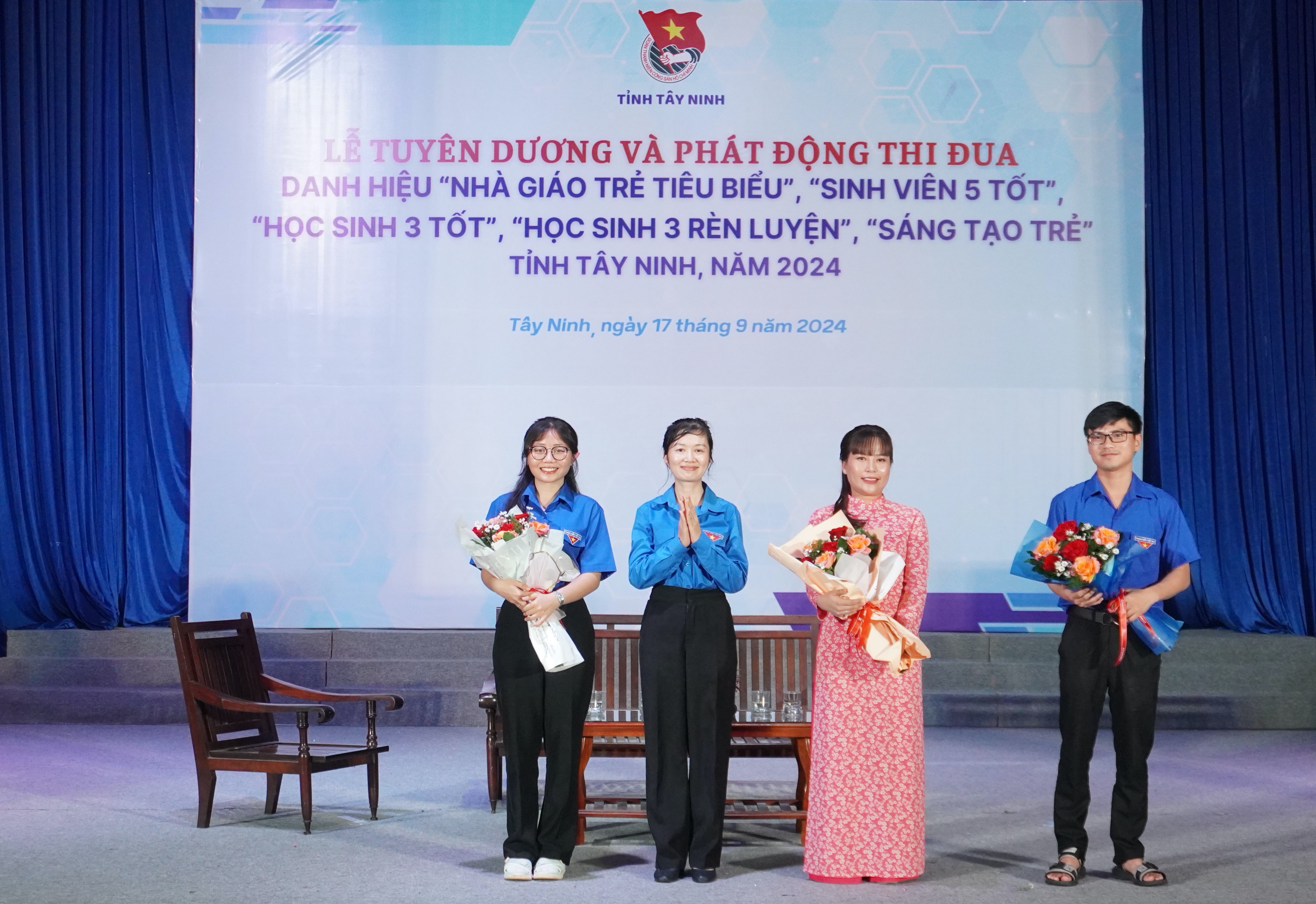 Dịp này, nhằm tôn vinh những gương điển hình xuất sắc, tạo động lực thi đua trong học tập, rèn luyện, lao động của khối trường học, căn cứ tiêu chí xét chọn, Ban Thường vụ Tỉnh đoàn tổ chức tuyên dương 08 gương “Nhà giáo trẻ tiêu biểu”, 18 sinh viên đạt danh hiệu “Sinh viên 5 tốt”, 06 học sinh đạt danh hiệu “Học sinh 3 rèn luyện”, 10 học sinh đạt danh hiệu “Học sinh 3 tốt”, 10 gương “Sáng tạo trẻ”.