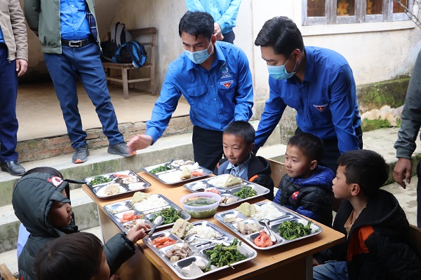 "Bữa cơm tất niên" cho các em học sinh trường Tiểu học, Mầm non Đoọc Mạy, xã Đoọc Mạy, huyện Kỳ Sơn