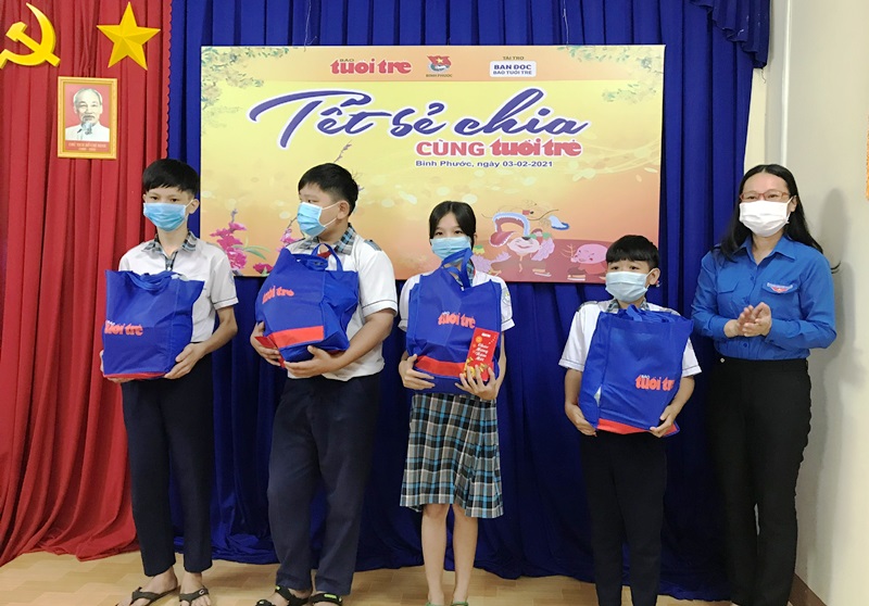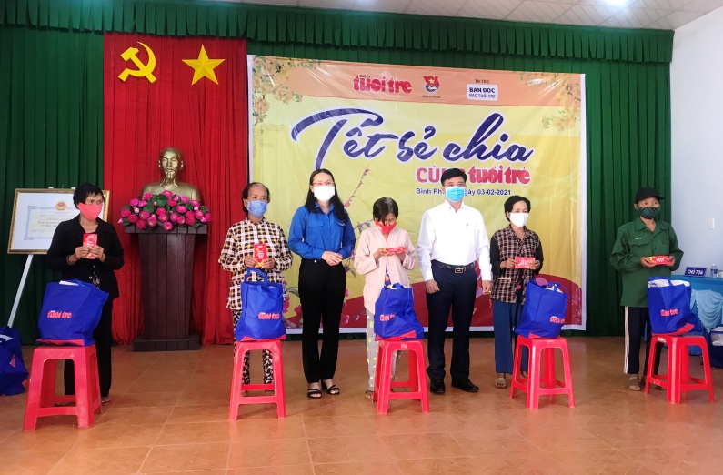 Tại chương trình, đại diện Tỉnh Đoàn Bình Phước thay mặt Báo tuổi trẻ đã trao tặng 300 phần quà (tổng giá trị 210 triệu đồng) cho thanh thiếu nhi và nhân dân có hoàn cảnh khó khăn trên địa bàn thị xã Bình Long và huyện Lộc Ninh.