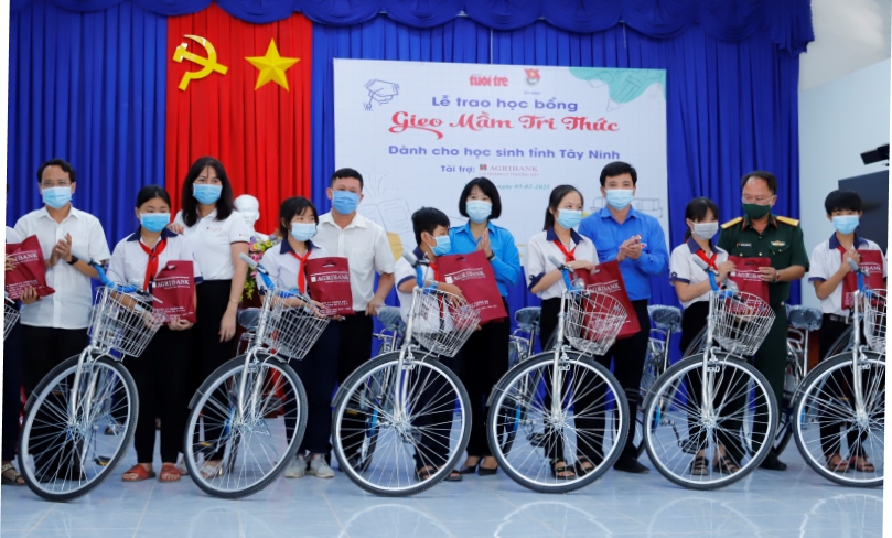 Sáng cùng ngày, đoàn đã tổ chức lễ trao học bổng “Gieo mầm tri thức” năm 2021 cho 50 em học sinh thuộc xã Tân Đông, huyện Tân Châu, tỉnh Tây Ninh có hoàn cảnh khó khăn đạt thành tích khá, giỏi trong học tập với tổng trị giá 100 triệu đồng do Ngân hàng Nông nghiệp và phát triển nông thôn Việt Nam, chi nhánh Lý Thường Kiệt (Agribank Lý Thường Kiệt) tài trợ, mỗi xuất trị giá 2 triệu đồng gồm quà và 01 chiếc xe đạp.