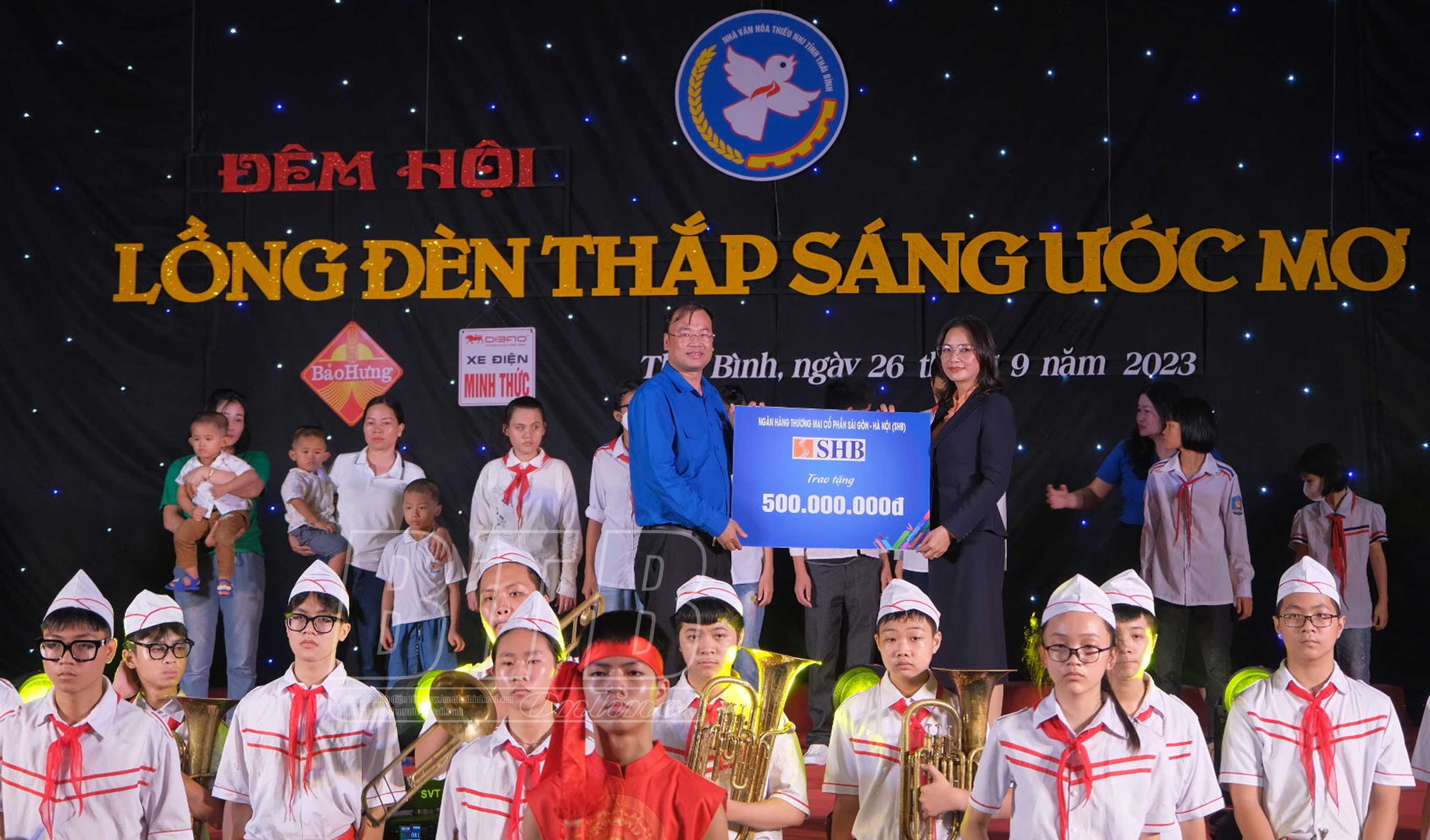 Cũng trong dịp này, nằm trong chuỗi các hoạt động tổ chức Tết Trung thu năm 2023 với chủ đề "Lồng đèn thắp sáng ước mơ", được sự quan tâm và dành tình cảm đối với thiếu nhi Thái Bình của Ông Đỗ Quang Hiển - Chủ tịch Hội đồng Quản trị Ngân hàng TMCP Sài Gòn - Hà Nội, ngày 28/9/2023, Ban Thường vụ Tỉnh đoàn tổ chức thăm hỏi, trao tặng 21 quyển sổ tiết kiệm, mỗi sổ trị giá 20 triệu đồng tiền mặt và quà, xe đạp cho các em học sinh có hoàn cảnh đặc biệt khó khăn trên địa bàn toàn tỉnh với tổng trị giá 500 triệu đồng.