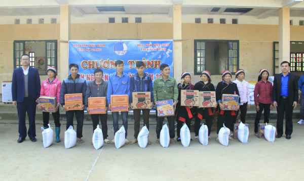Trao tặng quà cho các gia đình khó khăn tại thôn Phìn Sảng, xã Minh Tân, huyện Vị Xuyên, tỉnh Bắc Giang, nơi đời sống nhân dân còn nhiều khó khăn, tỷ lệ hộ nghèo cao và là một trong những địa phương chịu thiệt hại nặng nề đợt mưa lũ vừa qua