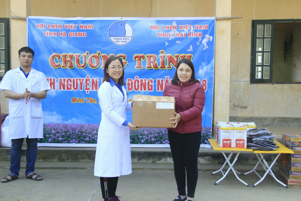 Đồng thời, đoàn tình nguyện đã trao 80 suất quà cho các hộ dân đặc biệt khó khăn và học sinh vượt khó, 50 suất quà cho trẻ em mầm non trị giá 10 triệu đồng; 300 chiếc áo; 100 đôi dép, khăn mặt, sách vở cho nhân dân trong thôn; trồng 100 cây xanh tại trung tâm Làng thanh niên lập nghiệp; khám bệnh, phát thuốc miễn phí cho 200 bà con nhân dân; tổ chức tư vấn cho nhân dân về phòng tránh các bệnh nhiễm khuẩn hô hấp cấp tính ở trẻ em, sức khỏe sinh sản và tuyên truyền, hướng dẫn người dân vệ sinh khi ăn uống, tư vấn, hướng dẫn bà con cách chăm sóc bản thân, sinh hoạt hợp vệ sinh, cũng như ý nghĩa của việc đến các cơ sở y tế khi có bệnh. Dịp này, Tỉnh đoàn Thái Bình đã tặng cho Tỉnh đoàn Hà Giang 2 công trình thanh niên trị giá 25 triệu đồng.