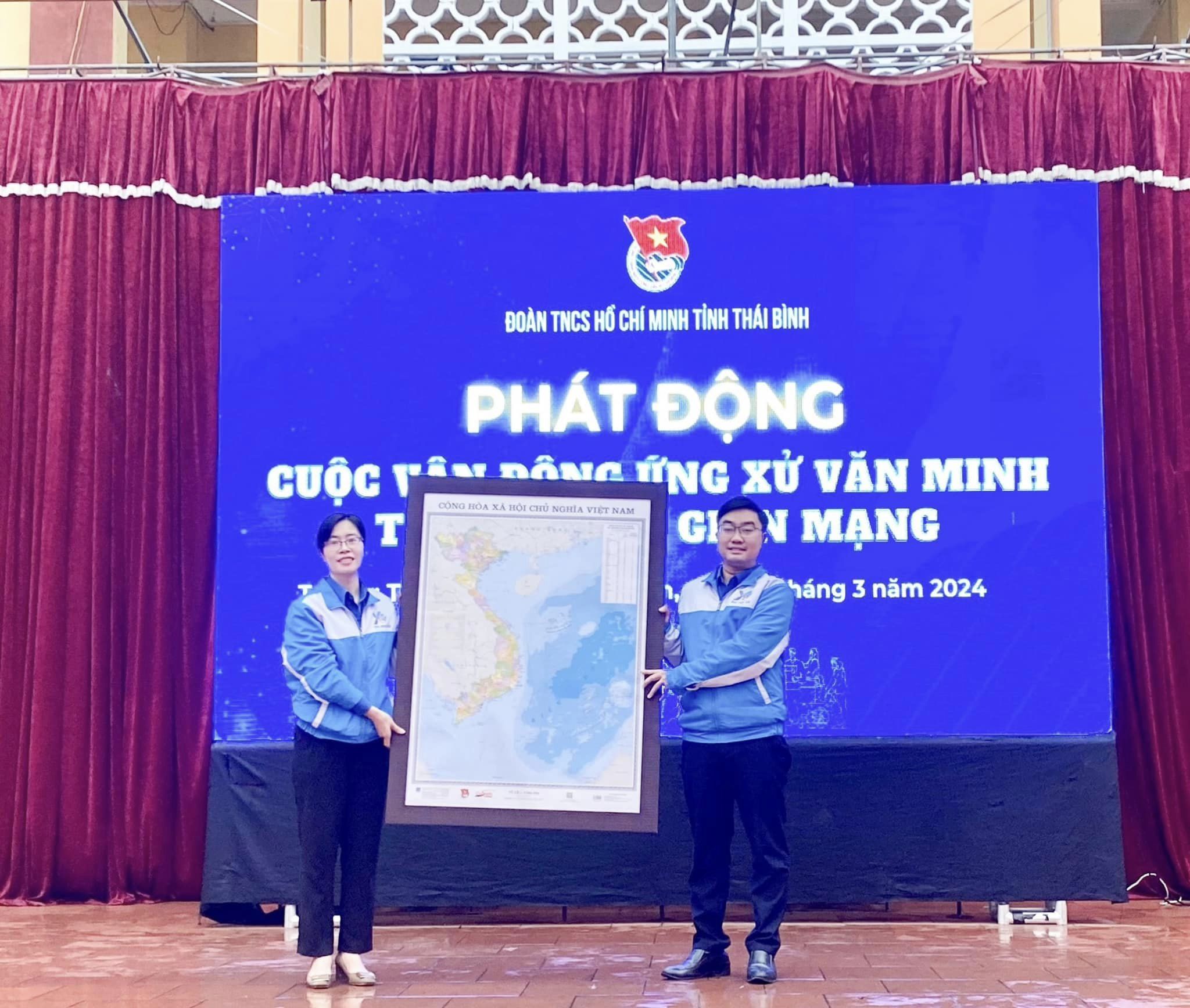 Tại chương trình, đồng chí Nguyễn Bá Cát đã trao tặng bản đồ Việt Nam cho đoàn cơ sở huyện Vũ Thư.