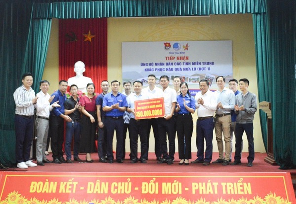 Ngày 28/10/2020 BTV Tỉnh đoàn - Hội LHTN Việt Nam tỉnh Thái Bình phối hợp với Hội Doanh nhân trẻ tỉnh tổ chức Chương trình tiếp nhận ủng hộ nhân dân các tỉnh miền Trung khắc phục hậu quả mưa lũ.