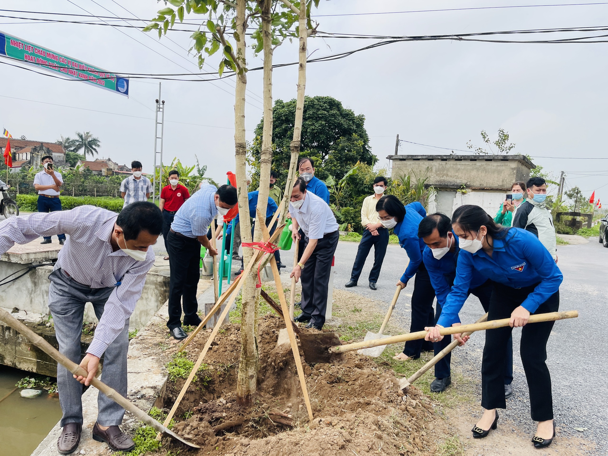 Các đại biểu trồng cây tại xã Minh Phú (Đông Hưng).