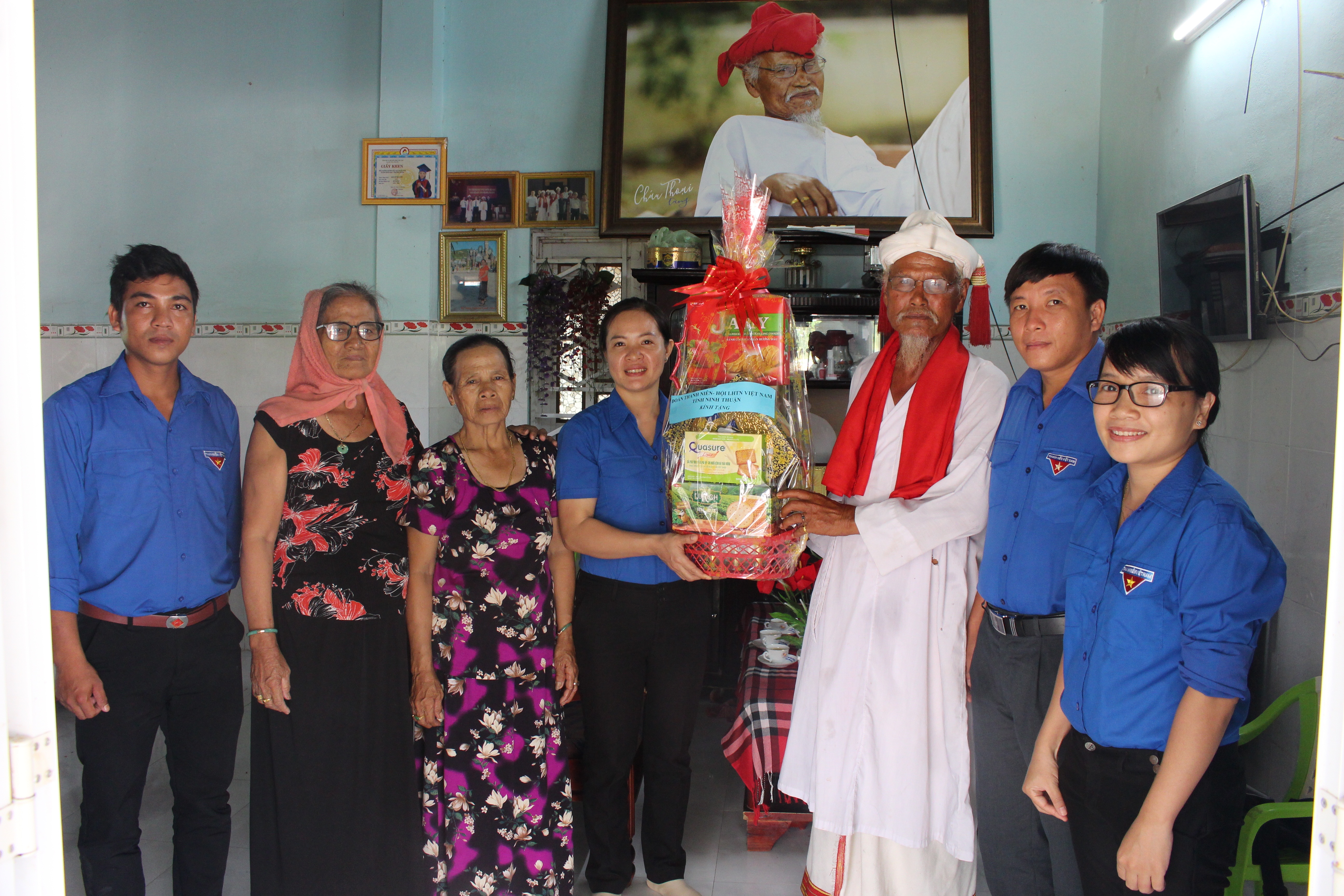 Sáng ngày 12/10, Ban Thường vụ Tỉnh Đoàn, Hội Liên hiệp Thanh niên tỉnh Ninh Thuận cũng đã đến thăm, chúc mừng và tặng quà cho ông Hán Đô, Chủ tịch Hội đồng chức sắc đồng bào dân tộc Chăm theo đạo Bàlamôn tại thôn Vụ Bổn, xã Phước Ninh, huyện Thuận Nam.