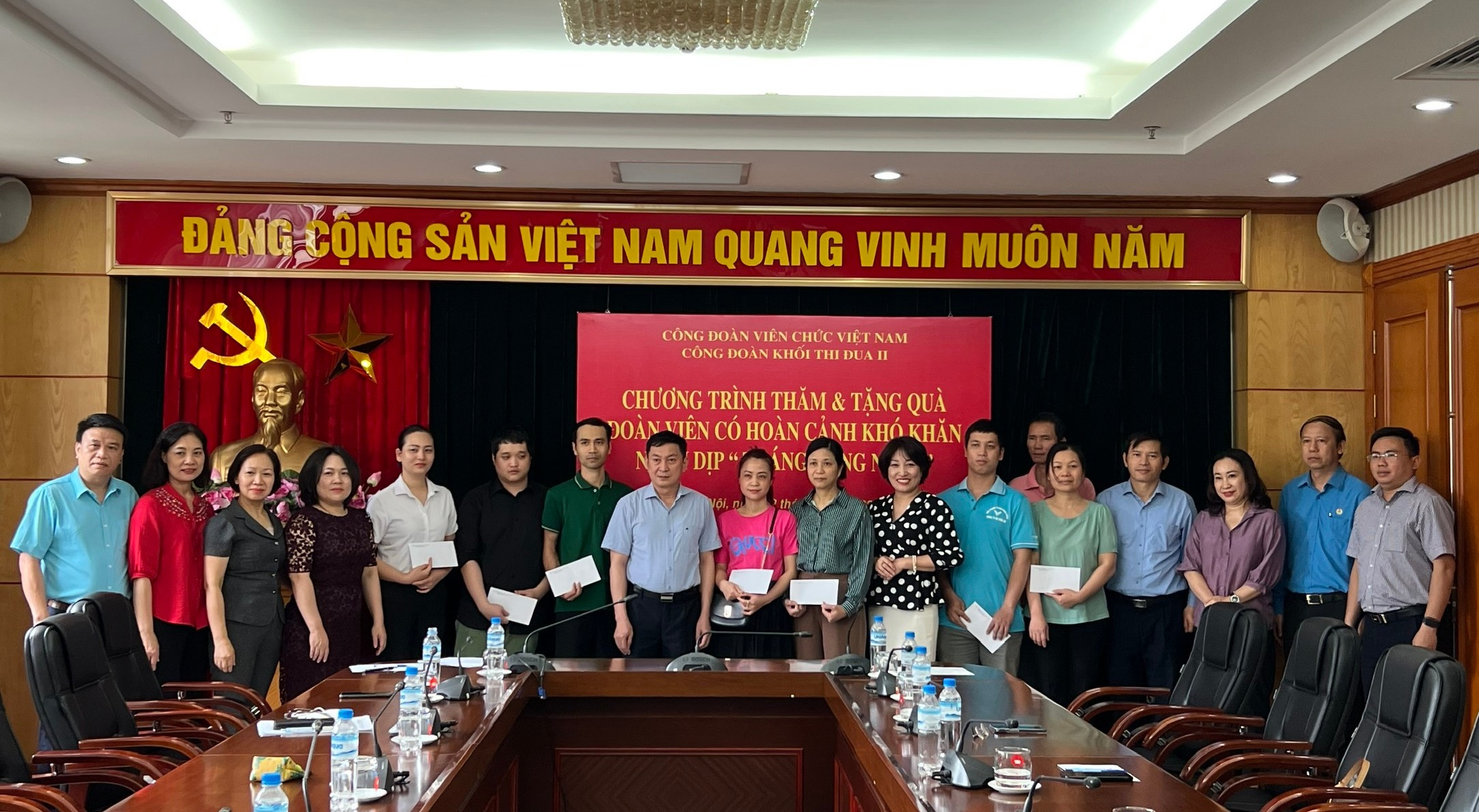 Tham dự chương trình có đồng chí Lê Hồng Hạnh, Ủy viên Ban Chấp hành Công đoàn Viên chức Việt Nam, Thường vụ Đảng ủy, Chủ tịch Công đoàn cơ quan Trung ương Đoàn, Trưởng Khối thi đua II cùng các đồng chí là Chủ tịch, Phó Chủ tịch, Ủy viên Ban Thường vụ, Ban Chấp hành Công đoàn của các đơn vị trong Khối đã tổ chức thăm hỏi, tặng quà động viên cho 45 công nhân, người lao động có hoàn cảnh khó khăn của các đơn vị thuộc Công đoàn khối thi đua II: Công ty TNHH MTV in Tiến Bộ, Nhà khách Hồ Tây và Nhà khách số 8 Chu Văn An thuộc Văn phòng Trung ương Đảng; C.Ty Cồ phần in Công đoàn Việt Nam Thuộc cơ quan Tổng Liên Đoàn Lao động Việt Nam; Công ty Cổ phần may Vạn Xuân thuộc Trung ương Đoàn TNCS Hồ Chí Minh