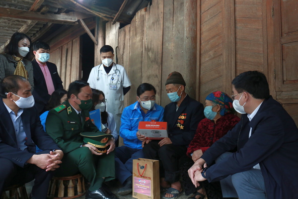 Đồng chí Nguyễn Anh Tuấn, Ủy viên BCH Trung ương Đảng, Bí thư thứ nhất TƯ Đoàn cùng các đồng chí lãnh đạo thăm hỏi tặng quà cho gia đình ông Hờ Tồng Rê ở xã Nậm Cắn, huyện Kỳ Sơn