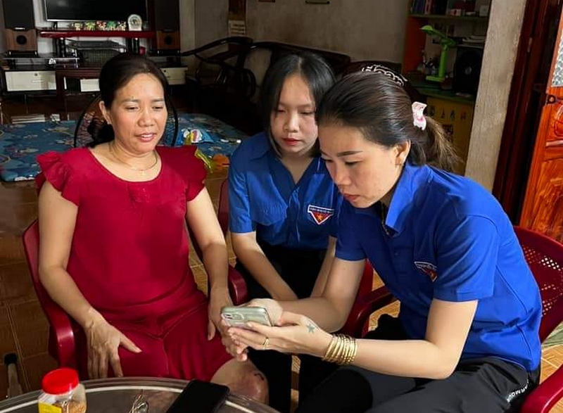 Các bạn đoàn viên thanh niên tổ chức tuyên truyền chuyển đổi số cho người dân, trực tiếp hướng dẫn thực hiện giao dịch không dùng tiền mặt và phổ biến về dịch vụ công trực tuyến cho dân cư trên địa bàn thị xã Chơn Thành.