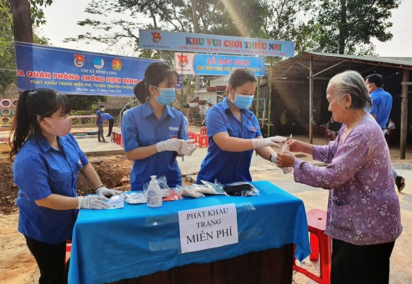 Trong bối cảnh dịch bệnh Covid-19 đang diễn ra ngày càng phức tạp, các cấp bộ Đoàn toàn tỉnh đã triển khai các hoạt động an sinh xã hội bằng những việc làm thiết thực, hiệu quả, mang lại hiệu ứng xã hội cao: tổ chức khám bệnh, tư vấn sức khỏe và phát thuốc miễn phí cho 1.289 người; vận động đoàn viên, thanh niên tham gia hiến máu và thu được 1.472 đơn vị máu; thăm hỏi, tặng quà 55 gia đình chính sách, Mẹ Việt Nam anh hùng trị giá 31,5 triệu đồng; vận động, quyên góp, trao tặng 210 triệu đồng cho anh Điểu Minh - Ủy viên Ủy ban Hội LHTN huyện Bù Đăng mắc bệnh hiểm nghèo; tặng 131 suất học bổng cho học sinh, sinh viên vượt khó trị giá 75 triệu đồng; tặng 400 hộp C sủi, hơn 01 nghìn khẩu trang, 7,2 tấn gạo, 710 thùng mỳ, 01 nghìn cục xà bông, gần 10 nghìn chai nước sát khuẩn, 300 thùng nước suối, 10 quả trứng gà và 70 triệu tiền mặt... cho người dân tại các khu vực cách ly và các chiến sỹ bộ đội Biên phòng trực tại các chốt đường mòn, lối mở các huyện biên giới với tổng giá trị 1,5 tỷ đồng.