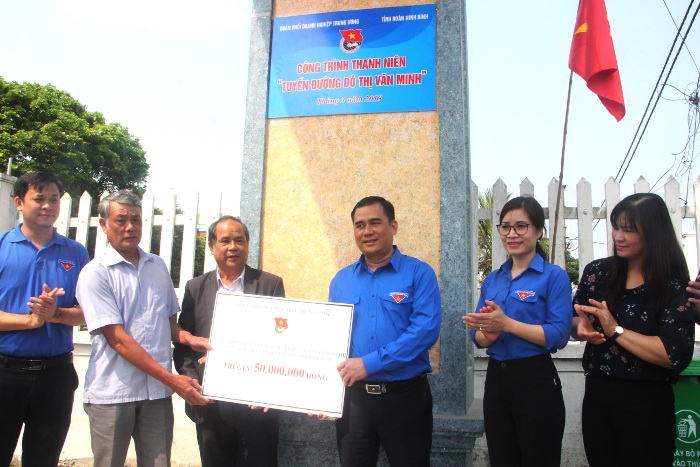 Tỉnh đoàn Ninh Bình phối hợp với Đoàn khối Doanh nghiệp Trung ương trao kinh phí hỗ trợ thực hiện công trình thanh niên "Tuyến đường đô thị văn minh". Đây là một trong nhiều công trình, phần việc thanh niên được các cấp bộ Đoàn trong tỉnh đẩy mạnh thực hiện trong Tháng Thanh niên 2019