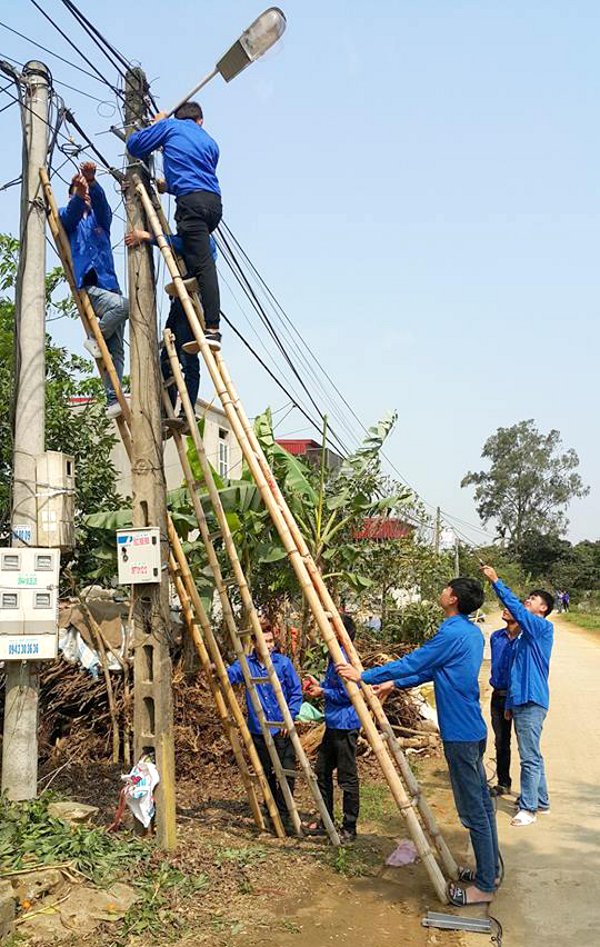 Đoàn viên thanh niên tham gia thực hiện công trình "Thắp sáng đường quê"