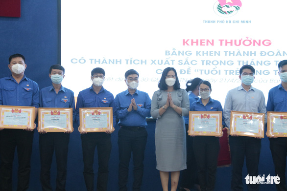 Thành đoàn TP.HCM khen thưởng một số đơn vị có thành tích xuất sắc trong Tháng thanh niên 2022 - Ảnh: CÔNG TRIỆU