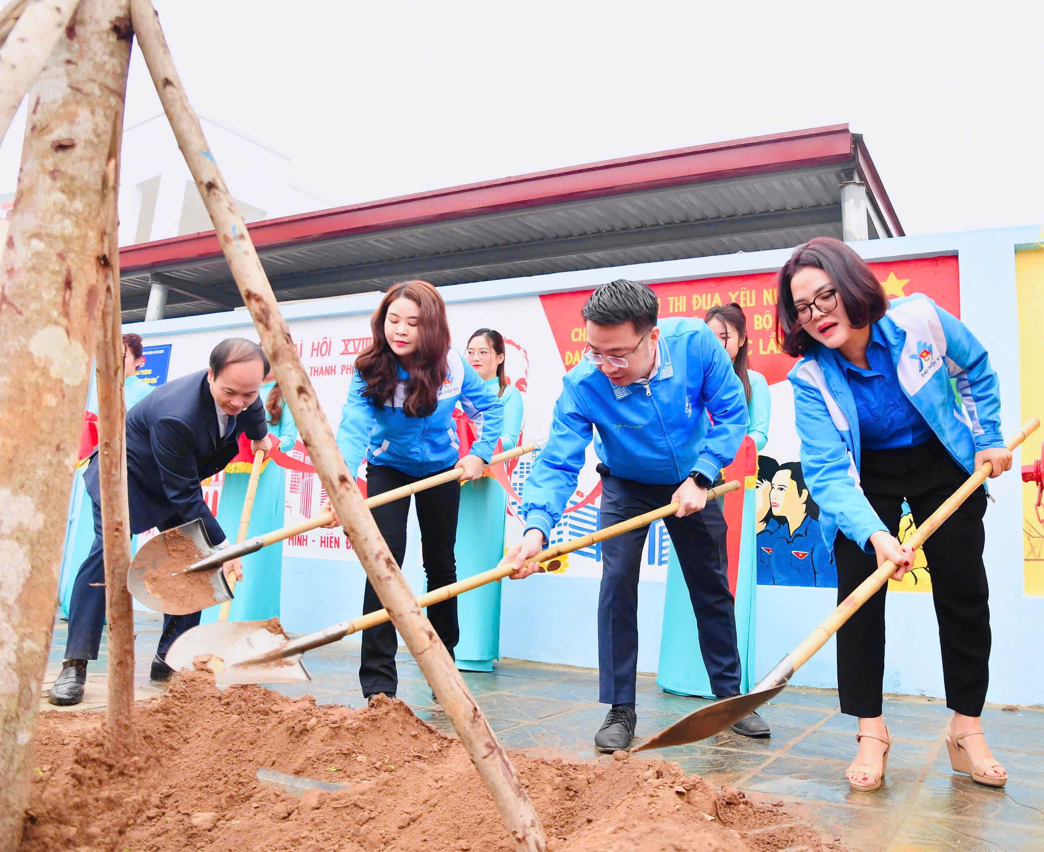 Các đại biểu trồng cây xanh sau lễ phát động.