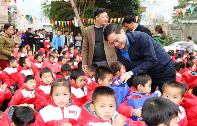 Chương trình quà xuân Kỷ Hợi năm 2019 của bạn đọc báo Tuổi Trẻ đến với 500 em học sinh nghè thuộc gia đình bị thiệt hại nặng do thiên tai năm 2017 và 2018 ở hai xã Tam Thanh, Tam Lư.