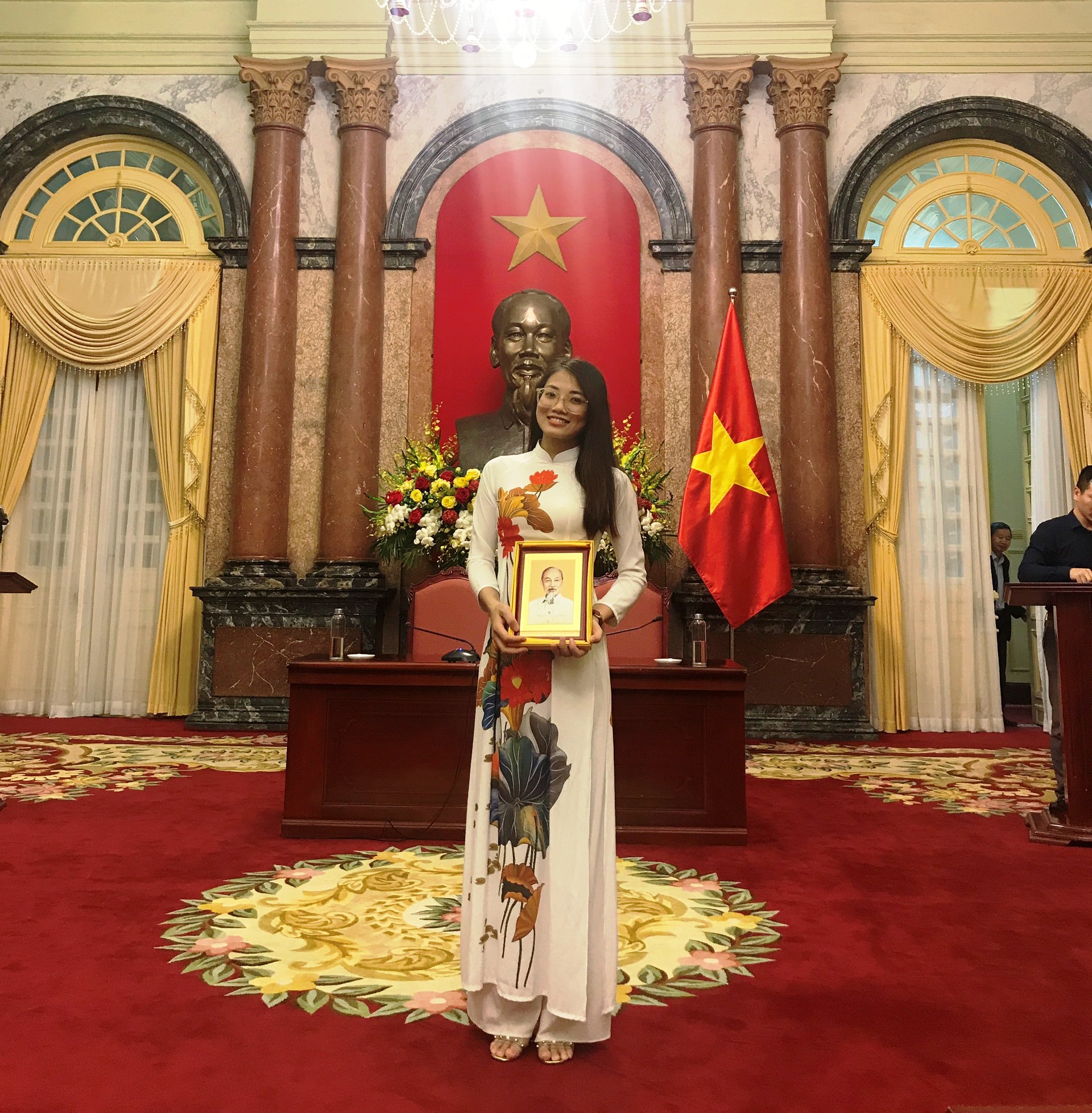 Phó Chủ tịch nước Đặng Thị Ngọc Thịnh trao Giải thưởng Sao Tháng Giêng cao quý cho bạn Trình Hồng Chuyên sinh viên trường Cao đẳng Y tế Thanh Hóa