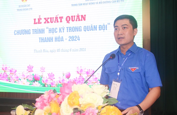 Phó Bí thư Tỉnh đoàn Đoàn Văn Trường phát biểu tại lễ xuất quân.