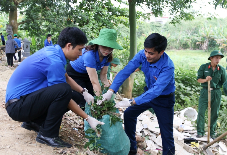 ĐVTN vệ sinh môi trường, thu gom rác thải ngay sau Lễ ra quân