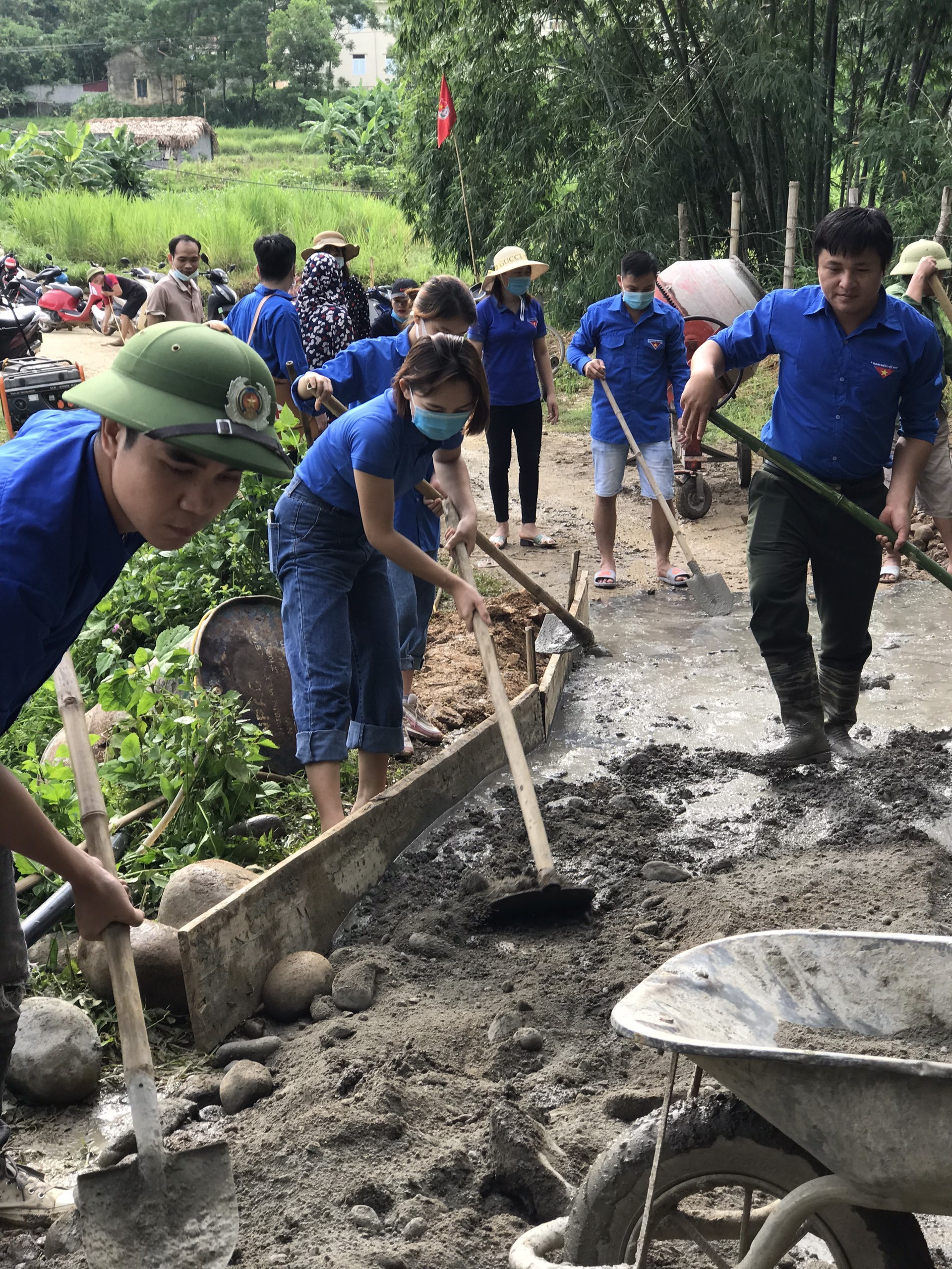 ĐVTN huyện Lang Chánh ra quân làm đường bê tông liên thôn bản với tổng chiều dài 250m tại Thôn Cui, xã Đồng Lương