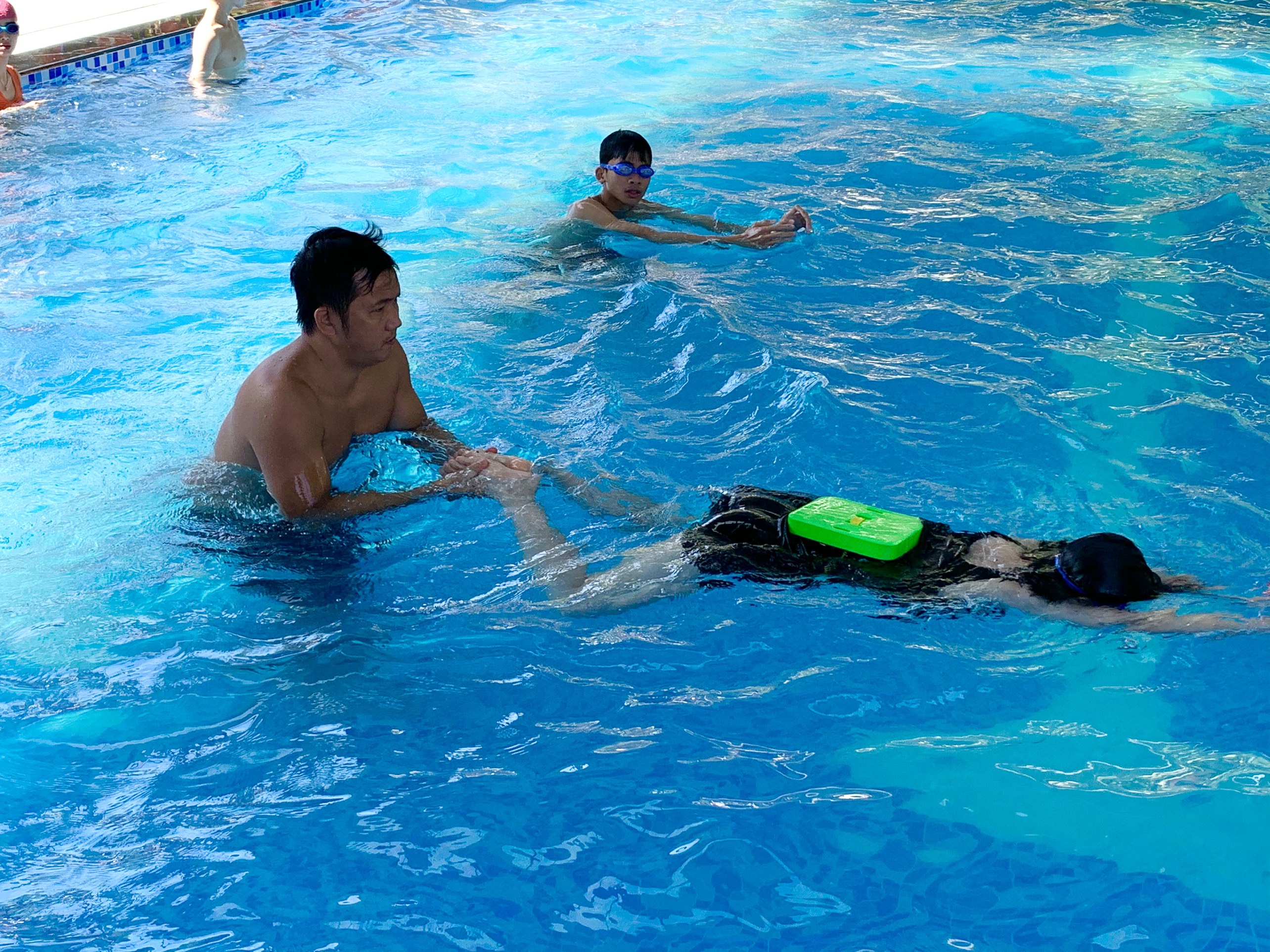 Sau buổi Lễ các em được các chuyên gia hướng dẫn về các kỹ thuật, kỹ năng trong khi bơi