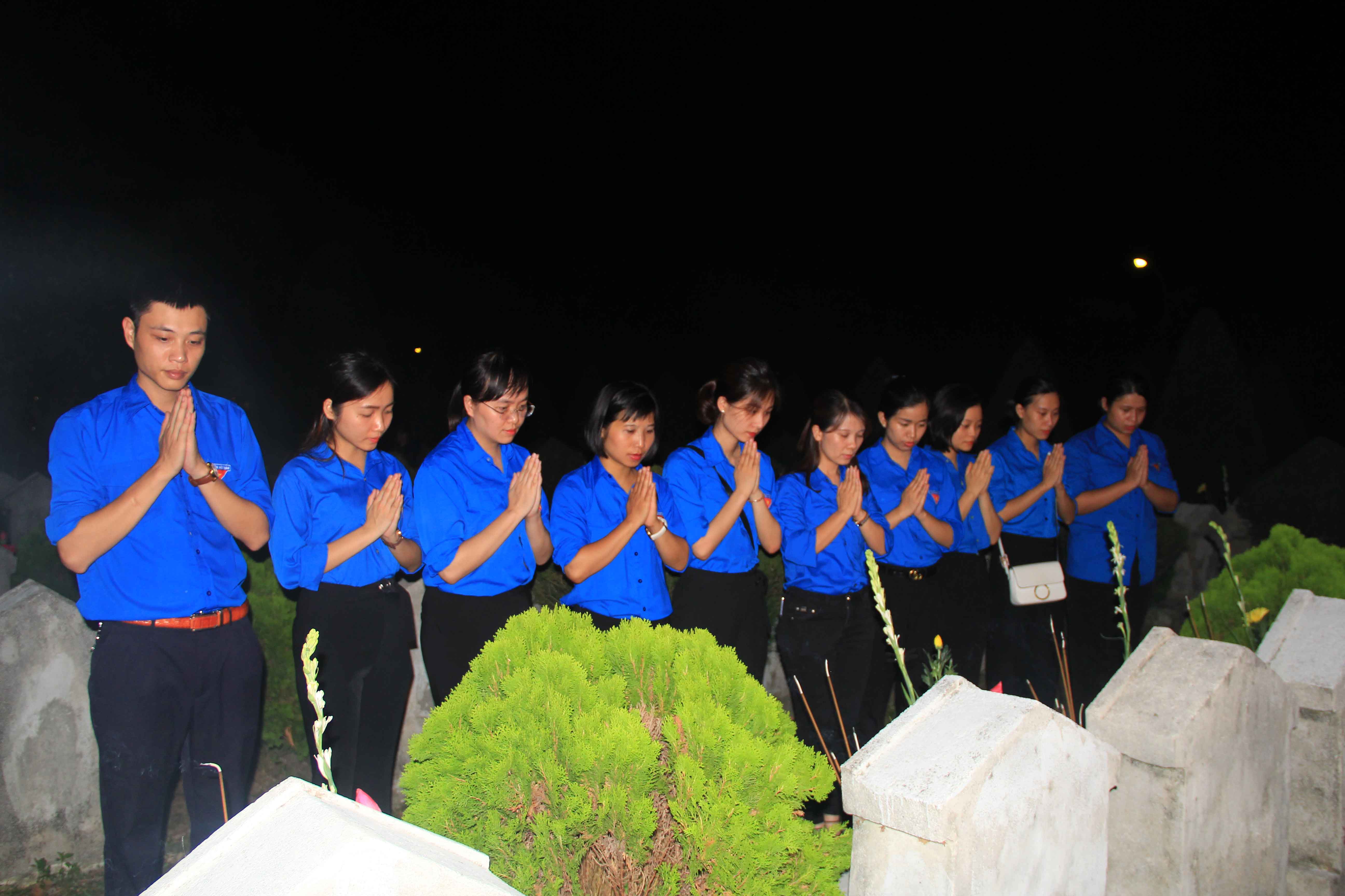 Trong không khí trang nghiêm, thành kính, các đồng chí lãnh đạo và đông đảo nhân dân đã dành một phút mặc niệm tưởng nhớ, tri ân công lao to lớn của các anh hùng liệt sỹ. Gần 1000 cán bộ, ĐVTN đại diện cho hơn 1 triệu thanh niên toàn tỉnh đã kính cẩn dâng lên các anh hùng, liệt sỹ vòng hoa mang dòng chữ “Tuổi trẻ Thanh Hóa đời đời nhớ ơn các anh hùng, liệt sỹ”; đặt trên từng phần mộ của các anh, các chị những bông hoa tươi thắm, thắp lên những ngọn nến lung linh để thể hiện quyết tâm không ngừng thi đua học tập, rèn luyện, lao động sáng tạo, đồng hành với thanh niên lập thân, lập nghiệp, xung kích tình nguyện xây dựng quê hương ngày càng giàu đẹp, kiểu mẫu; mãi mãi xứng đáng với truyền thống của tuổi trẻ đất Lam Sơn và của quê hương Thanh Hoá anh hùng.