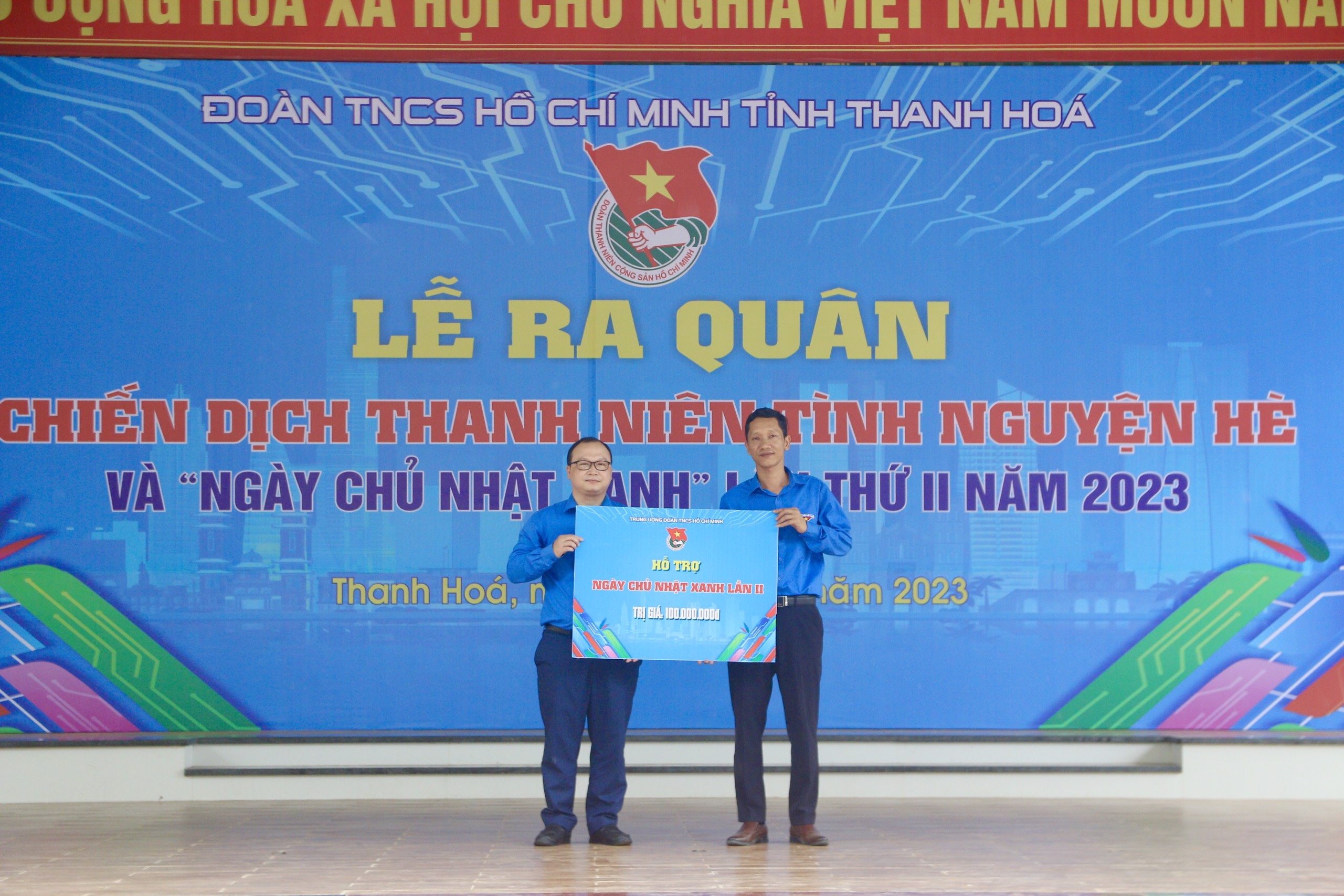 Tại lễ ra quân, Trung ương đoàn đã trao biển hỗ trợ nguồn lực trị giá 100 triệu đồng cho Ban Thường vụ Tỉnh đoàn triển khai các hoạt động Ngày Chủ Nhật xanh.