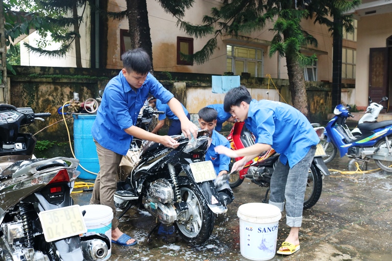 Các bạn đoàn viên thanh niên tham gia rửa xe