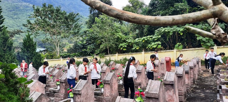 Thanh thiếu nhi dâng hương Khu tưởng niệm liệt sỹ tại các địa phương
