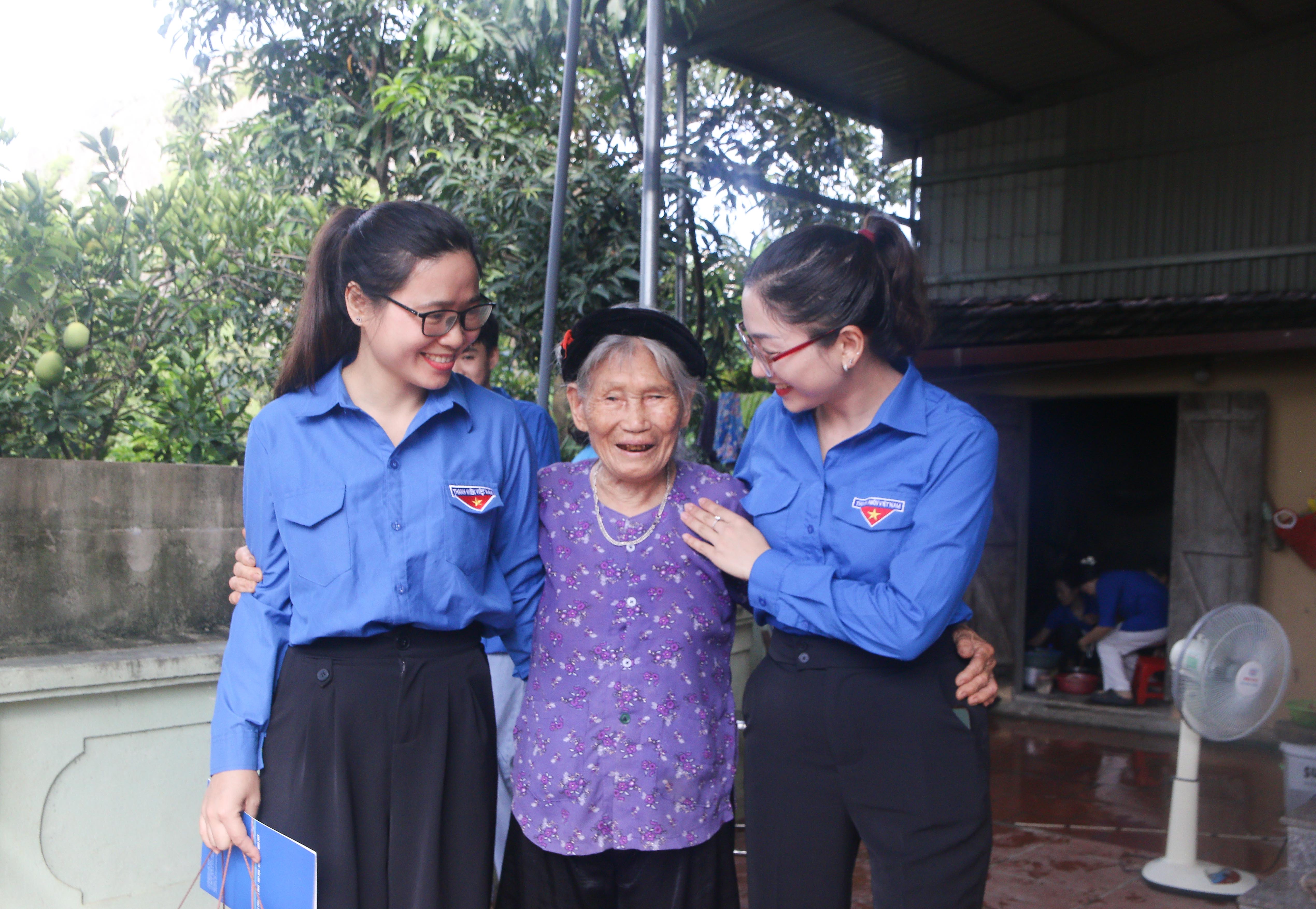 Đồng chí Phó Bí thư Tỉnh đoàn cùng các đồng chí trong đoàn công tác gửi lời chúc sức khỏe, động viên tinh thần các Mẹ Việt Nam anh hùng khỏe mạnh, sống lâu, tiếp tục nêu gương, dạy bảo con cháu phát huy truyền thống cách mạng hào hùng, tu dưỡng, rèn luyện đức - trí - thể mỹ, tích cực học tập và làm theo tư tưởng, đạo đức, phong cách Hồ Chí Minh, có nhiều đóng góp vào công cuộc xây dựng quê hương đẹp giàu.