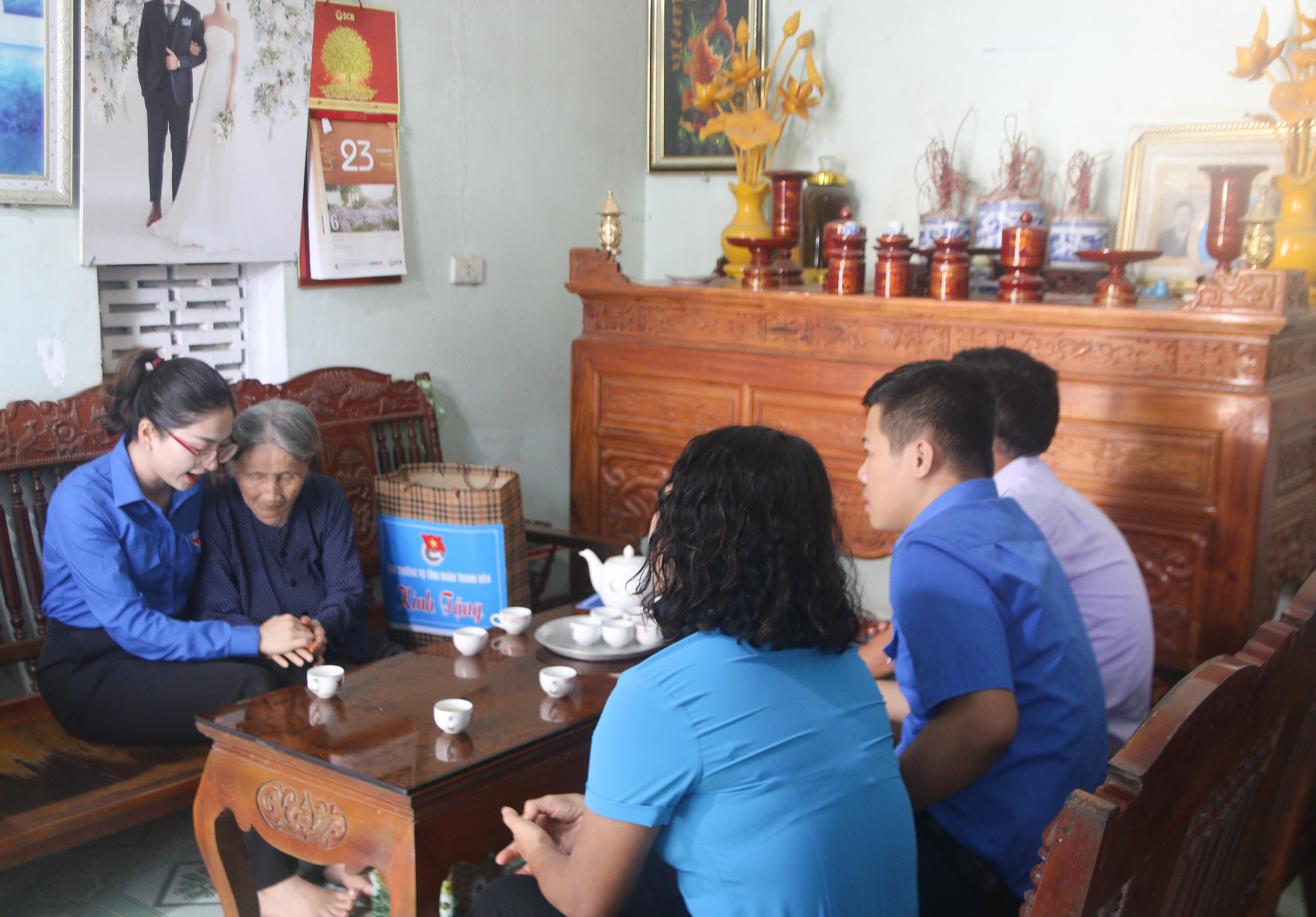 Phó Bí thư Tỉnh đoàn Phùng Tố Linh thăm hỏi Mẹ Việt Nam anh hùng Nguyễn Thị Lịch, 95 tuổi có 3 con là liệt sĩ tại thị trấn Hà Trung