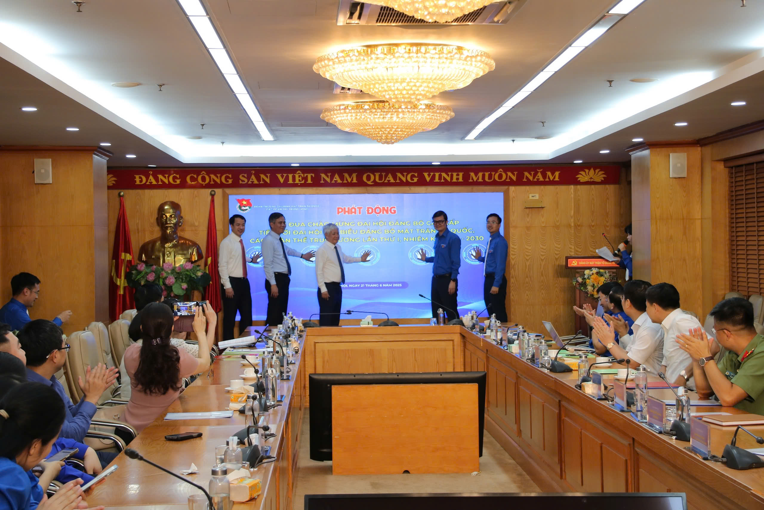 Tham dự buổi lễ có đồng chí Đỗ Văn Chiến, Ủy viên Bộ Chính trị, Bí thư Trung ương Đảng, Bí thư Đảng ủy Mặt trận Tổ quốc, các đoàn thể Trung ương, Chủ tịch Ủy ban Trung ương Mặt trận Tổ quốc Việt Nam; đồng chí Bùi Quang Huy, Ủy viên dự khuyết Trung ương Đảng, Bí thư thứ nhất Trung ương Đoàn; đồng chí Trần Thắng, Phó Bí thư Đảng ủy Mặt trận Tổ quốc, các đoàn thể Trung ương; đồng chí Ngô Văn Cương, Phó Bí thư Đảng ủy Mặt trận Tổ quốc, các đoàn thể Trung ương.