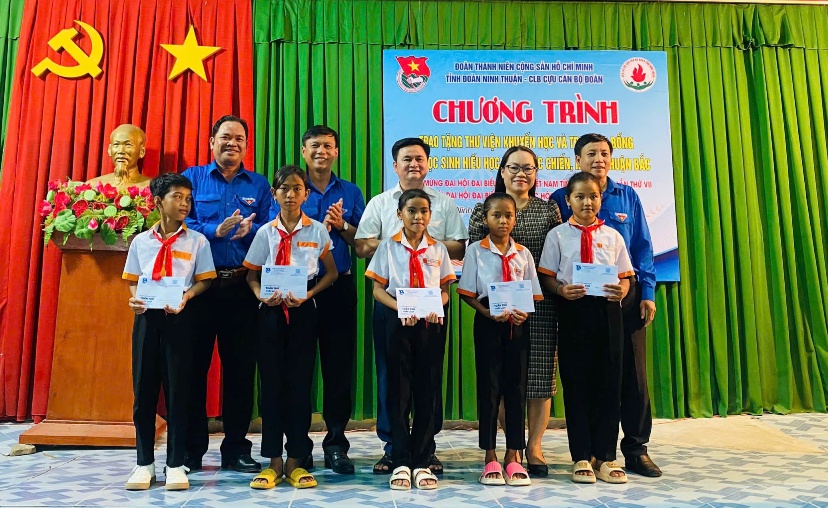 Nhân dịp này Tỉnh đoàn và CLB Cựu cán bộ Đoàn trao tặng 15 suất học bổng cho học sinh nghèo hiếu học trị giá 500.000₫/suất/học sinh. Đặc biệt là sự hỗ trợ 1000 quyển sách, truyện đọc thiếu nhi các loại cho Thư viện của Ban Liên lạc Cựu cán bộ Đoàn phía Nam.
