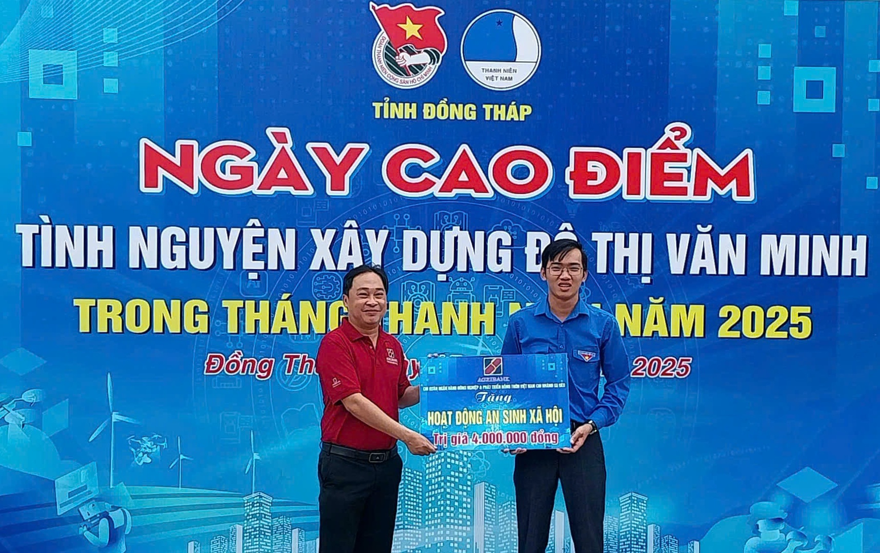Tại chương trình, Ban Thường vụ Tỉnh đoàn đã trao tặng 40 thùng sữa cho trẻ em có hoàn cảnh khó khăn; trao tặng bản đồ Việt Nam hưởng ứng phong trào “Tự hào một dải non sông”; tặng một căn nhà Nhân ái trị giá 60 triệu đồng, 20 phần quà cho người dân có hoàn cảnh khó khăn. Ngoài ra, Tỉnh đoàn Đồng Tháp còn phối hợp với Bệnh viện Đa khoa Tâm trí Đồng Tháp tổ chức khám, phát thuốc miễn phí 250 suất cho người dân khó khăn và nhiều phần quà an sinh xã hội cho trẻ em, gia đình có hoàn cảnh đặc biệt.